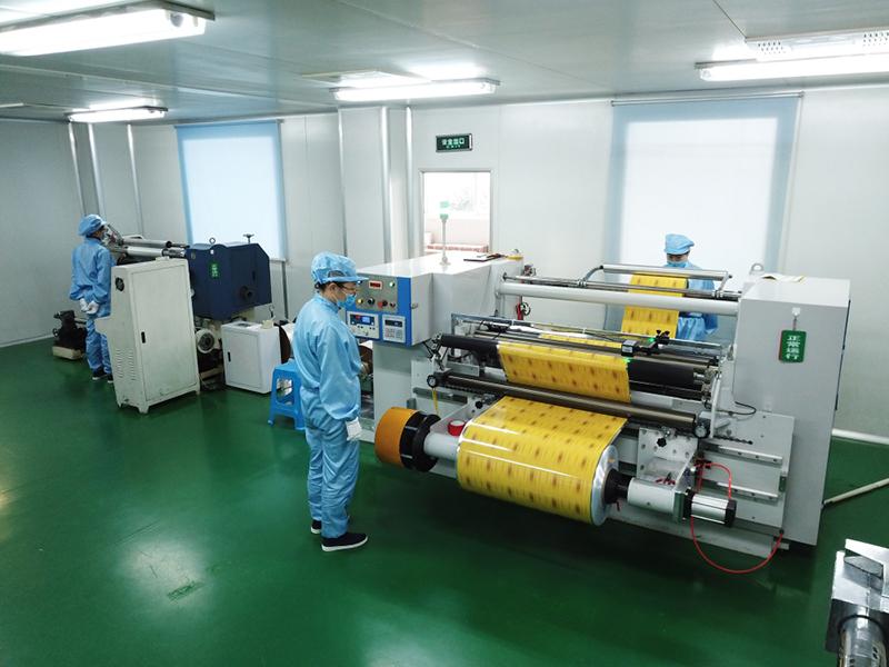 三台高速分切机,能对不同厚度复合膜进行高精度的分切,同时保证切面的整齐,满足客户能对其产品直接进行上机包装。